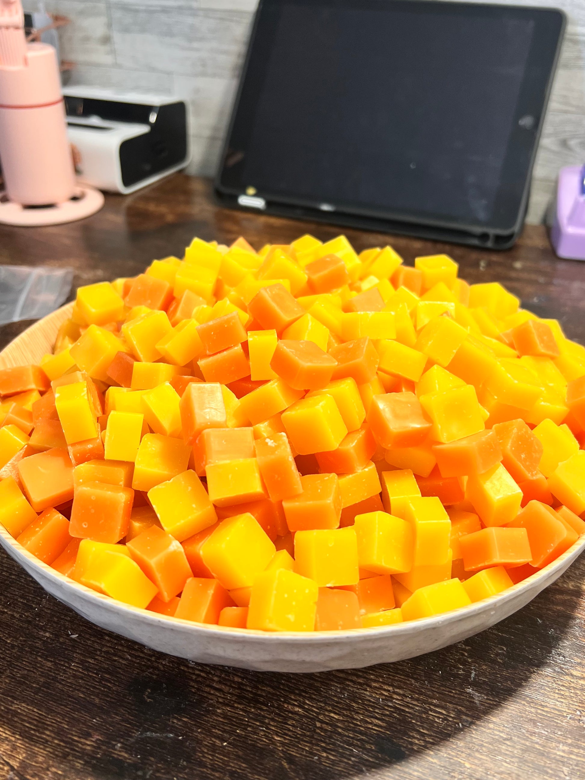 Get ready for some tropical fun! This fruity goodness is scented to smell like “Peach Mango Bellini” (or cocktail) Opening notes of tangerine & peach to create a sweet juicy combination. Base notes of sandalwood and petitgrain to add in some warmth that really tops off this scent.