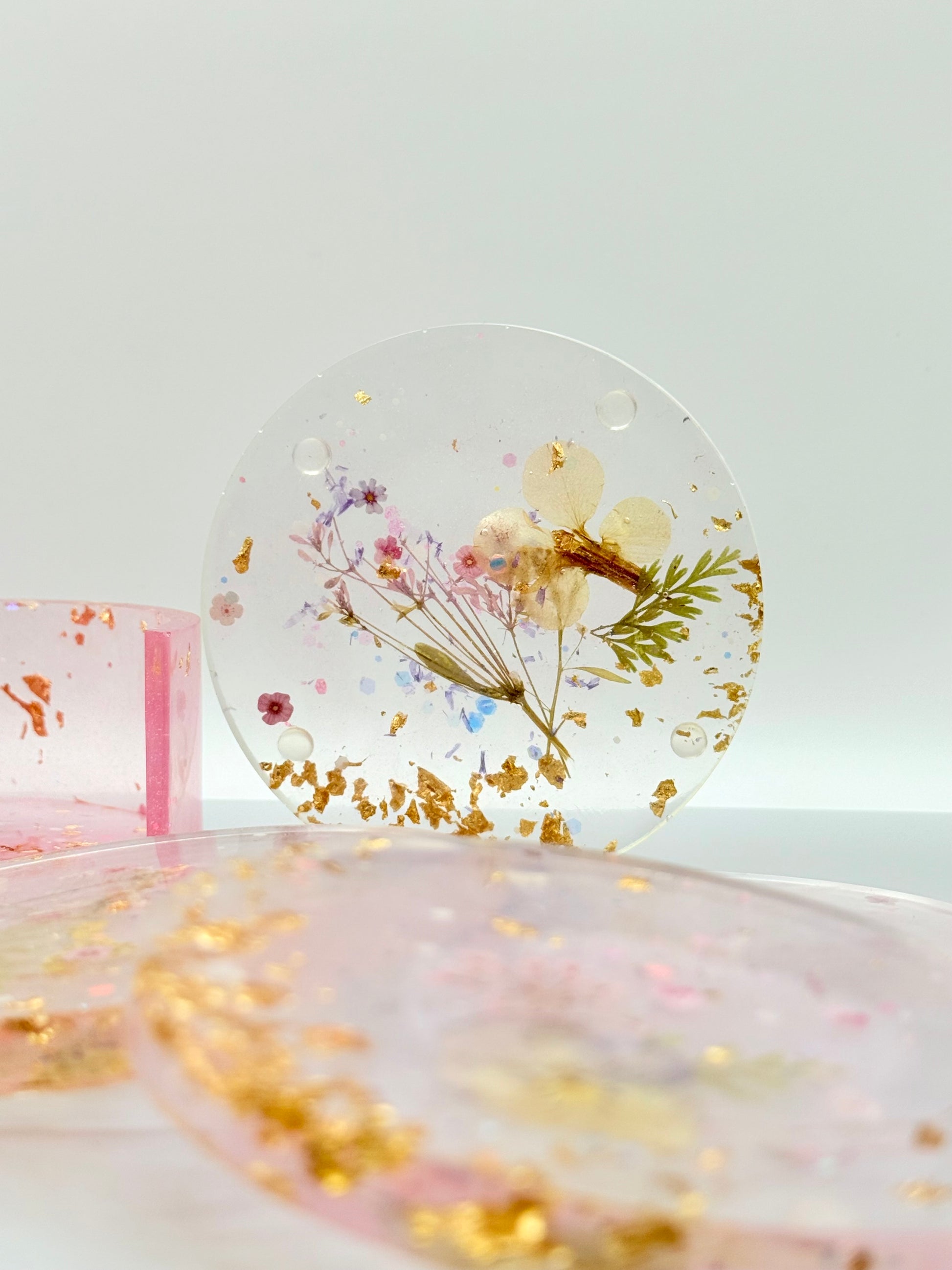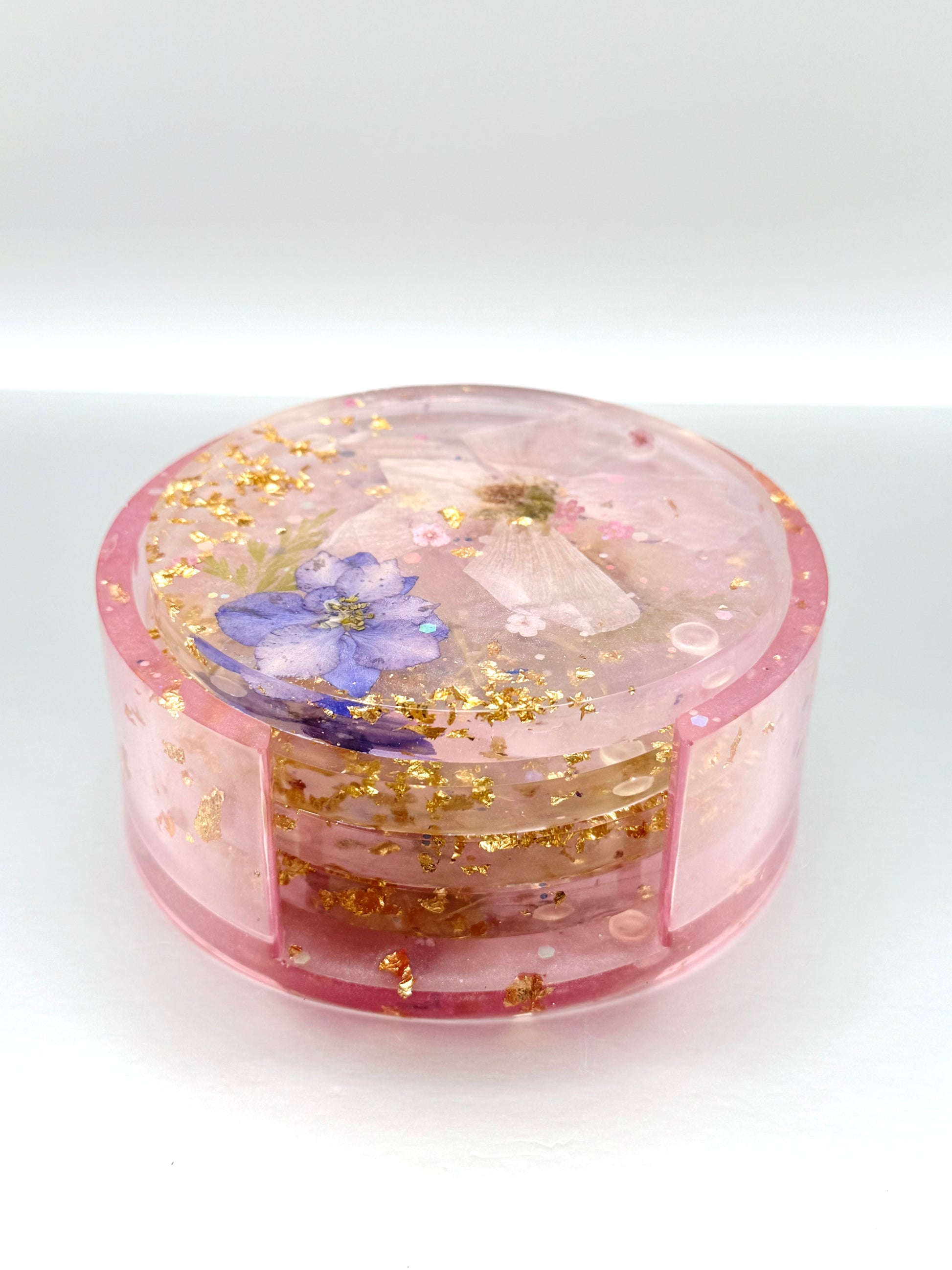 Wildflower Whimsy – Handmade Resin Coaster Set (5-Piece)